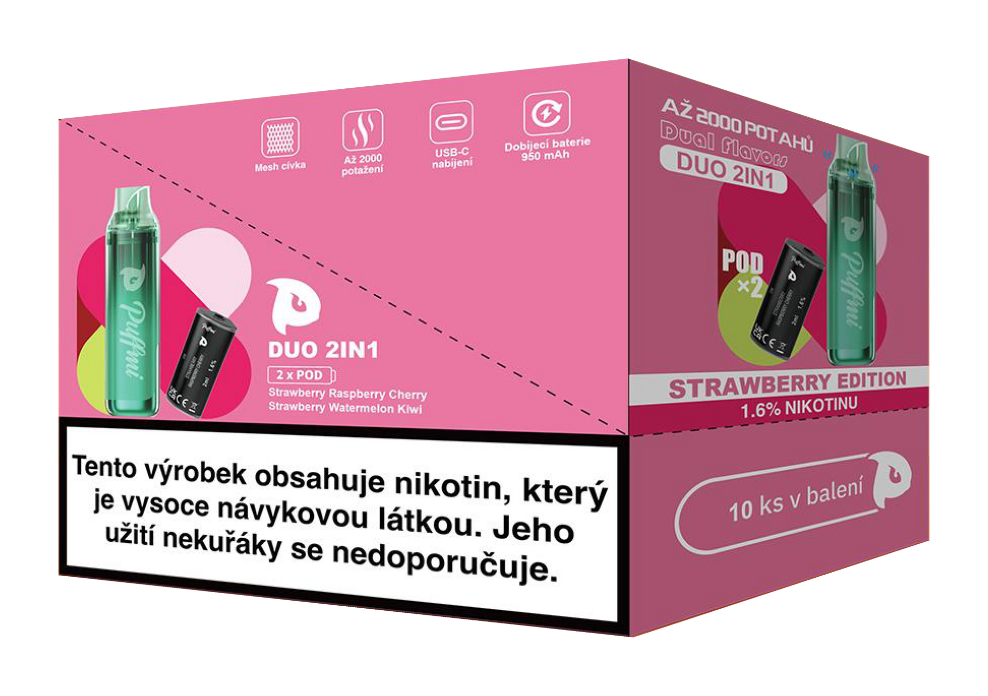 • Tento produkt obsahuje nikotin, který může zvýšit srdeční frekvenci, krevní tlak a může způsobit nevolnost.